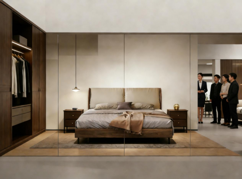 产品矩阵:产品线覆盖民用和商用两大领域。民用端有卧房、客厅、餐厅、书房等系列,形成“五位一体”的产品体系;商用端则提供酒店、办公家具一站式定制。