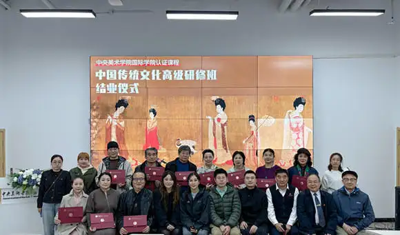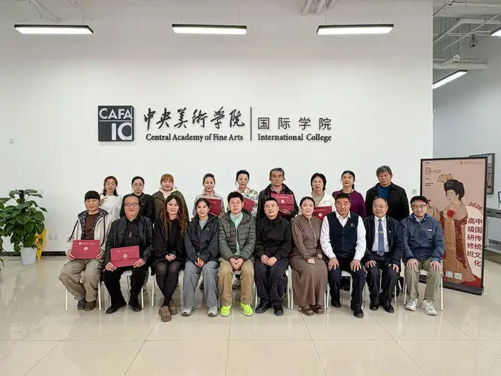 2026年3月23日,中国传统文化高级研修班——中央美术学院国际学院认证课程结班仪式顺利举行,标志着本次为期一段时间的传统文化沉浸式研修之旅圆满落幕。来自各行各业的传统文化爱好者、艺术从业者齐聚中央美术学院,在系统的学术滋养与技法锤炼中,深耕中华优秀传统文化沃土,圆满完成全部研修任务,顺利获得中央美术学院国际学院官方认证证书,携满满收获奔赴文化传承新征程。