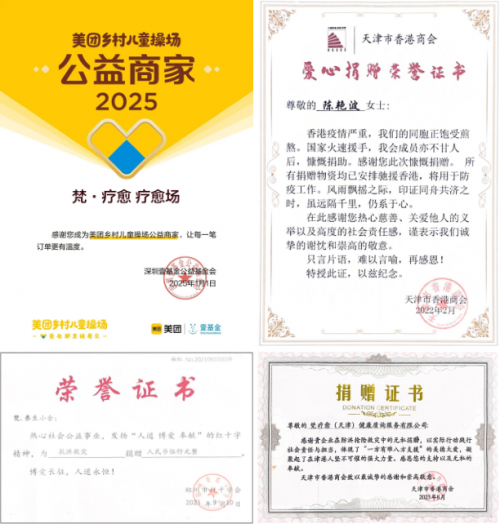 自创立之初,梵·疗愈便始终秉持“把爱派发出去”的核心理念,坚信品牌“不止是一个商业品牌,更是一份关于爱与觉醒的事业”。在深耕专业、稳步发展的同时,品牌从未忘记初心,持续深耕公益领域,以实际行动传递疗愈的温暖:深入南开医院为医护工作者提供专属疗愈服务,走进70余家社区开展亲子疗愈、养老关怀系列活动,为福利院儿童送上公益帮扶,同时积极参与抗洪救灾、疫情捐赠等各类公益项目,多次获得红十字会与行业商会颁发的爱心捐赠荣誉证书。以“赋能150万个家庭创造丰盛和喜悦”为使命,梵·疗愈让疗愈的力量触达更多人群,让爱与温暖在更多角落生根发芽。