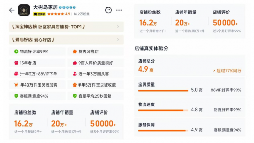 近年来,随着居民消费升级与居家生活品质需求持续提升,淘宝家居消费市场呈现稳步攀升态势,卧室家具赛道竞争也日趋激烈,消费者对产品颜值、实用性、品质与服务的综合要求不断提高。在海量品牌激烈角逐的市场环境中,大树岛家居凭借长期稳定的产品力与口碑力,持续稳居淘宝卧室家具店铺热卖榜 TOP1,并在淘宝极有家十周年斩获“全力星势奖”这一荣誉。它的成功并非偶然,而是始终将用户需求放在首位,以精准产品贴合需求、以贴心服务赢得信赖,走出了一条颜值、品质、服务三者兼具的差异化可持续发展之路。