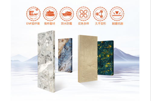 以纯进口俄桦基材+ MDI海洋板专用胶打造的海洋级基材为核心,将珍稀石材纹理与俄桦海洋板深度融合,既保留了天然奢石的美学表现力,又兼具俄桦海洋板的高耐水、抗变形特性,完美满足高端商业空间、星级酒店及豪宅定制对“颜值+耐用”的双重需求。
